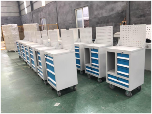 伴隨車間管理更規(guī)范化,為了提高工作效率,降低操作者的勞動(dòng)強(qiáng)度,開始廣泛使用車間工位器具和工作臺(tái)、工具柜等。以前企業(yè)領(lǐng)導(dǎo)都是在模仿使用工作臺(tái)、工具柜使用場(chǎng)景。而現(xiàn)在企業(yè)要求做的工位器具越來越人性化了。如下圖,山東軌道交通集團(tuán)為一線生產(chǎn),訂制的工作臺(tái),考慮工具擺放和檢測(cè)電腦位置等諸多因素設(shè)計(jì)而成的。